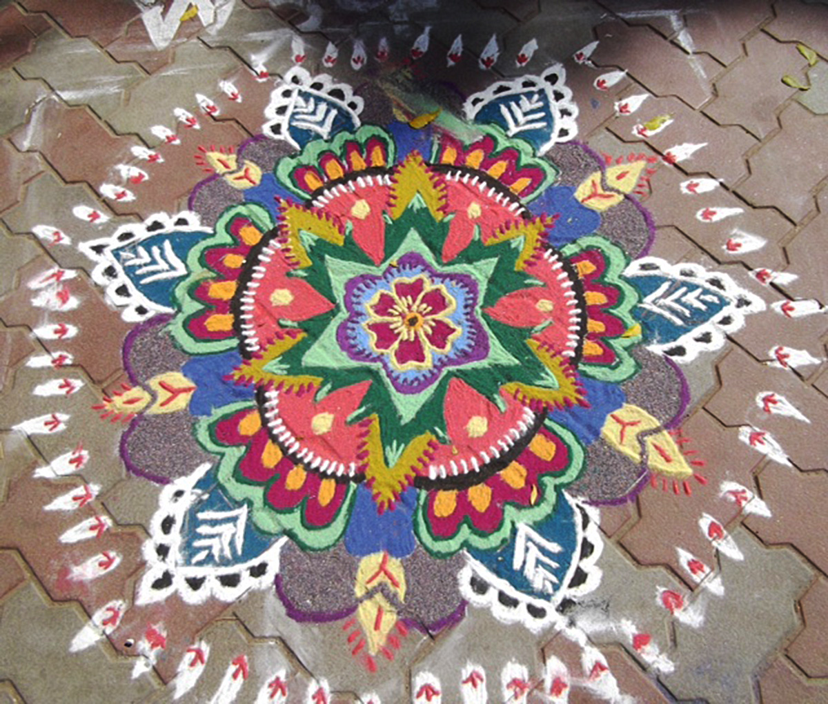 Kolam is an art, that originated in India, where in the early morning, patterns and mandalas are create using Rangoli at the entrance of homes, to welcome friends or relatives.