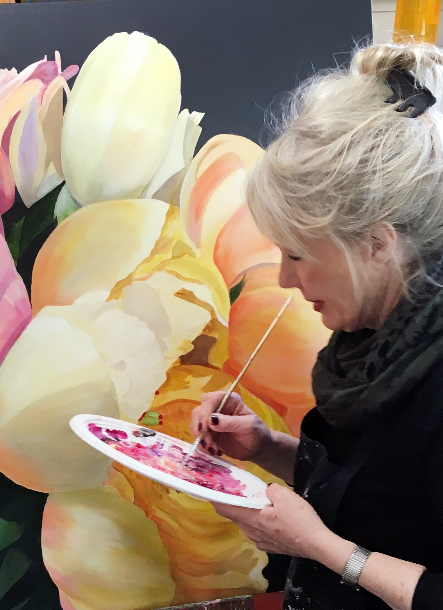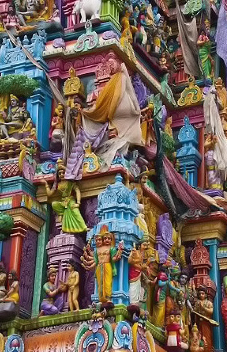 My love affair with colour, and the inspiration to create boldly coloured canvases, was I feel due to my many trips to India, and soaking up the vibrancy of the magnificent saris worn by the women, and the lavishly painted Hindu temples. I always love visiting any of the many market places in each city to see the baskets full of vibrant flowers and the piles of brightly coloured powdered rice called Rangoli.