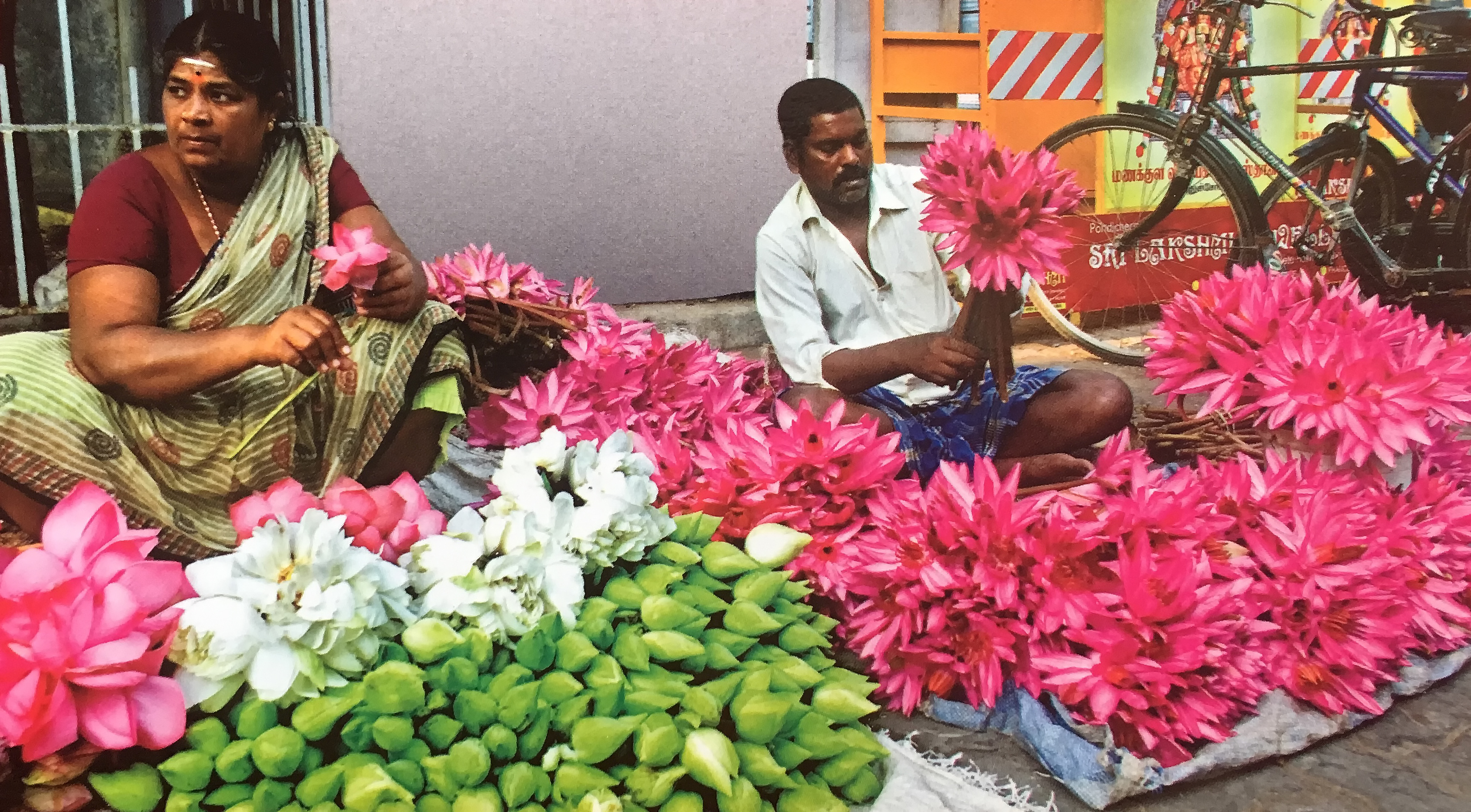 I feel this love of flowers has always drawn me to visit flower markets whenever I’m visiting a town or city, especially the one in Columbia Road, London . Flower markets in India were always a fascination as the women would sit on the ground creating flower garlands and small flower sacrifices to float in the rivers.